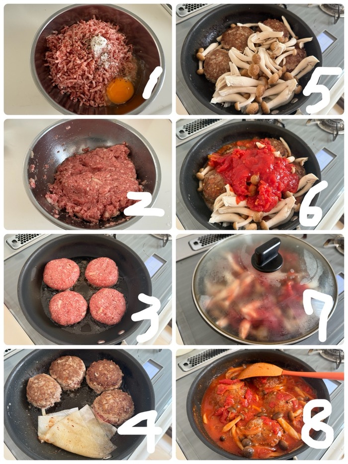 少し涼しくなってきたのでこってり濃厚な【トマト煮込みハンバーグ】で晩ごはん