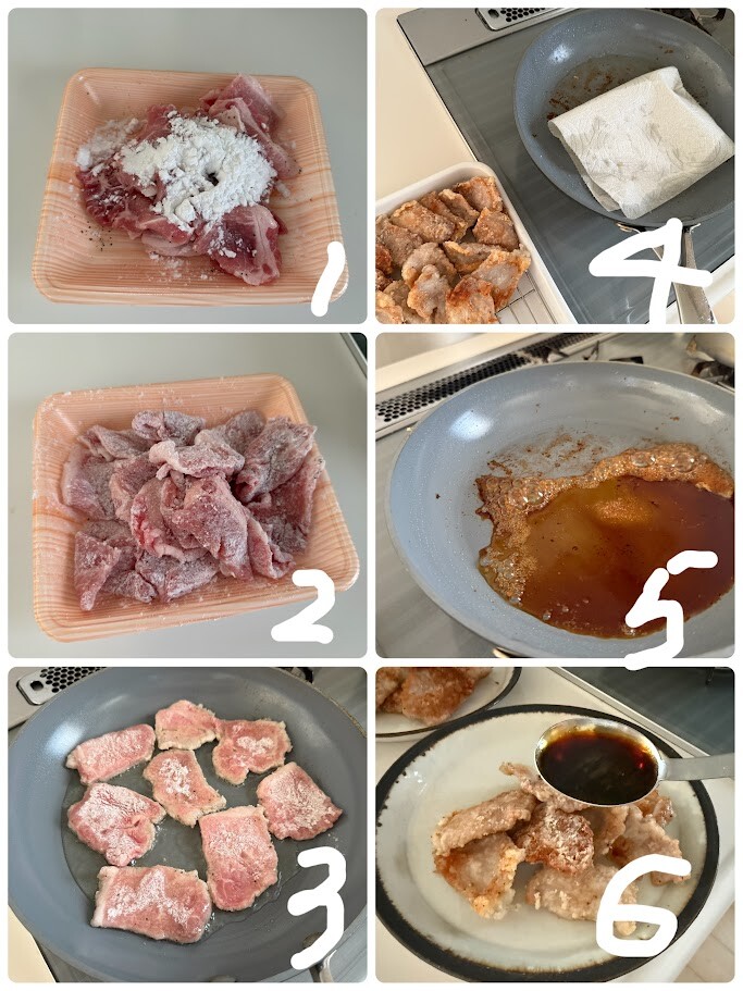 生姜焼き用の豚肉で【カリカリ豚肉の甘酢だれ】と晩ごはん(人はいつになったらちゃんとし···