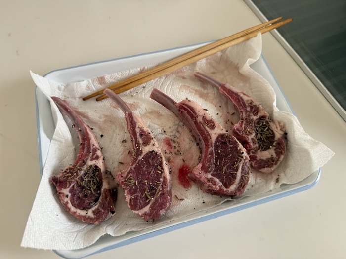 寝起きでボーっとしながら作ったラムチョップのソテーで晩ごはん